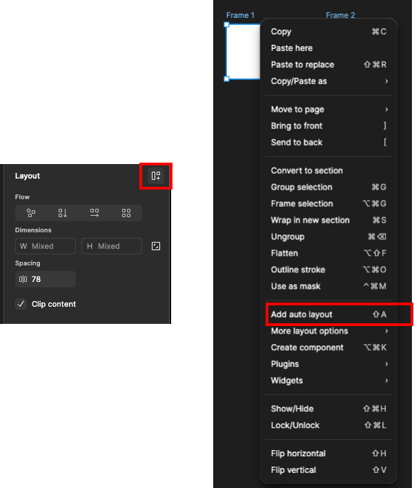 - 마우스 우클릭 : 선택된 요소에 마우스 우클릭 > Add auto layout 선택
