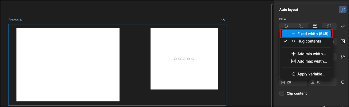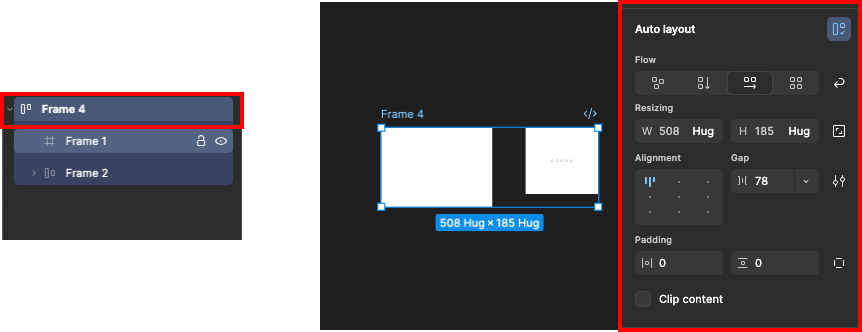 - 설명 : 부모 프레임의 크기가 내부 자식 요소들의 크기와 패딩에 따라 자동으로 조절됩니다. 즉, 자식 요소의 크기가 커지거나 작아지면 부모 프레임도 함께 커지거나 작아집니다.