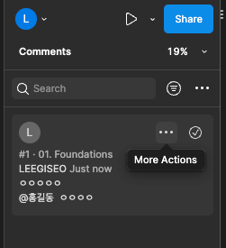 - 댓글 표시/숨기기 : 캔버스에서 모든 댓글 아이콘을 표시하거나 숨길 수 있습니다.(댓글 도구 선택 후 토글)