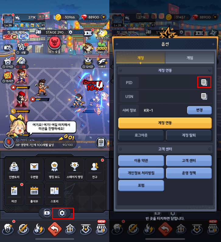 - 메인 스테이지: 게임의 스토리를 따라 진행하는 주요 콘텐츠입니다. 각 스테이지를 클리어할 때마다 경험치와 재화, 그리고 새로운 캐릭터를 획득할 수 있습니다.