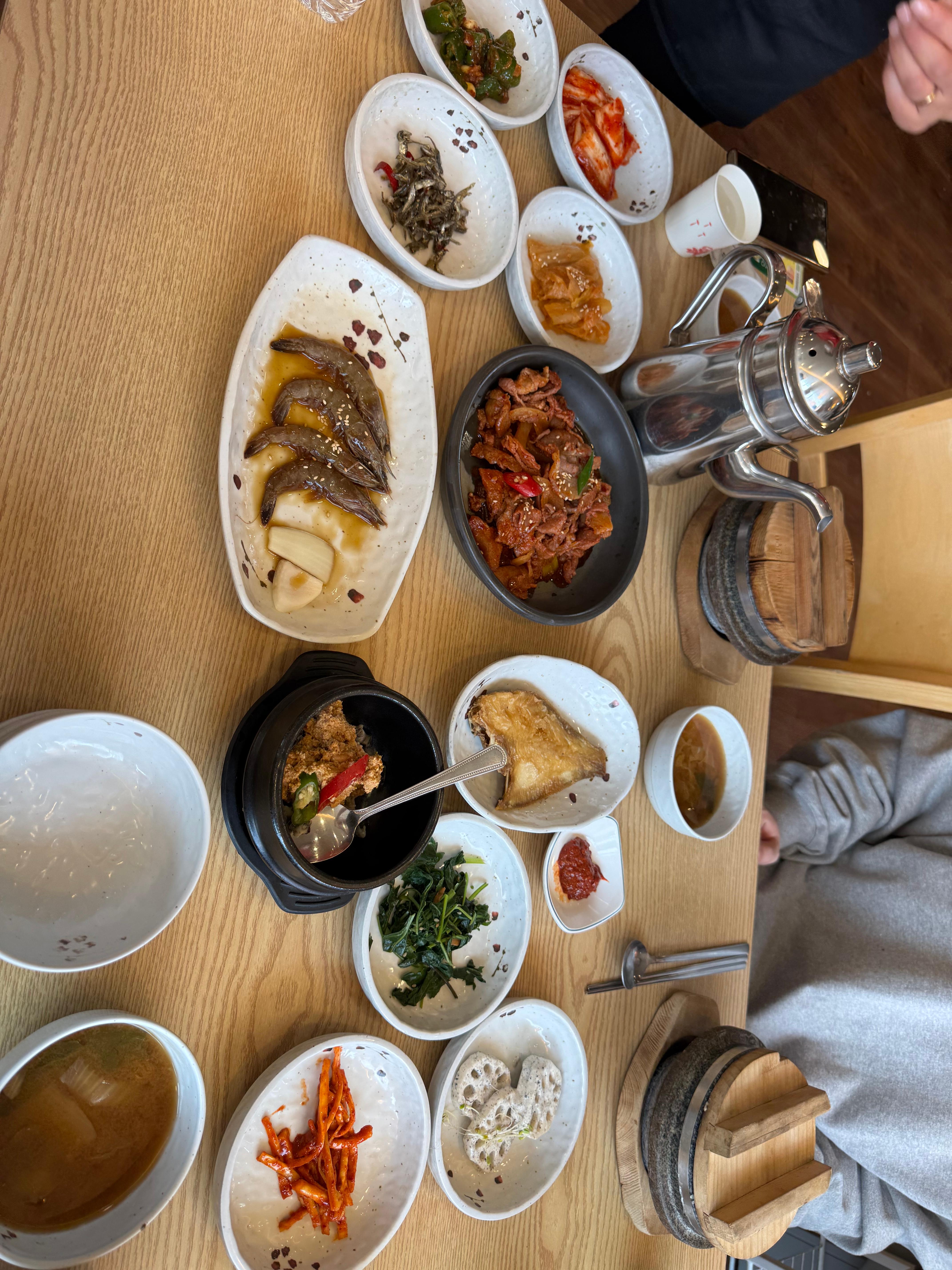 가족이랑 밥먹을 땐 메뉴가 다양해야 다 같이 즐길 수 있잖아요? 근데 여기선 밥이랑 가자미 빼고 거의 모든 반찬이 리필이 가능하다니... 이건 그냥 무한 행복 아닌가 싶었어요 ㅎㅎ 특히 묵은지랑 제육볶음이 진짜 취향 저격이라 밥이 모자랄 정도였는데, 돌솥밥이라 누룽지까지 챙겨 먹으니 배가 꽉 차더라구요!