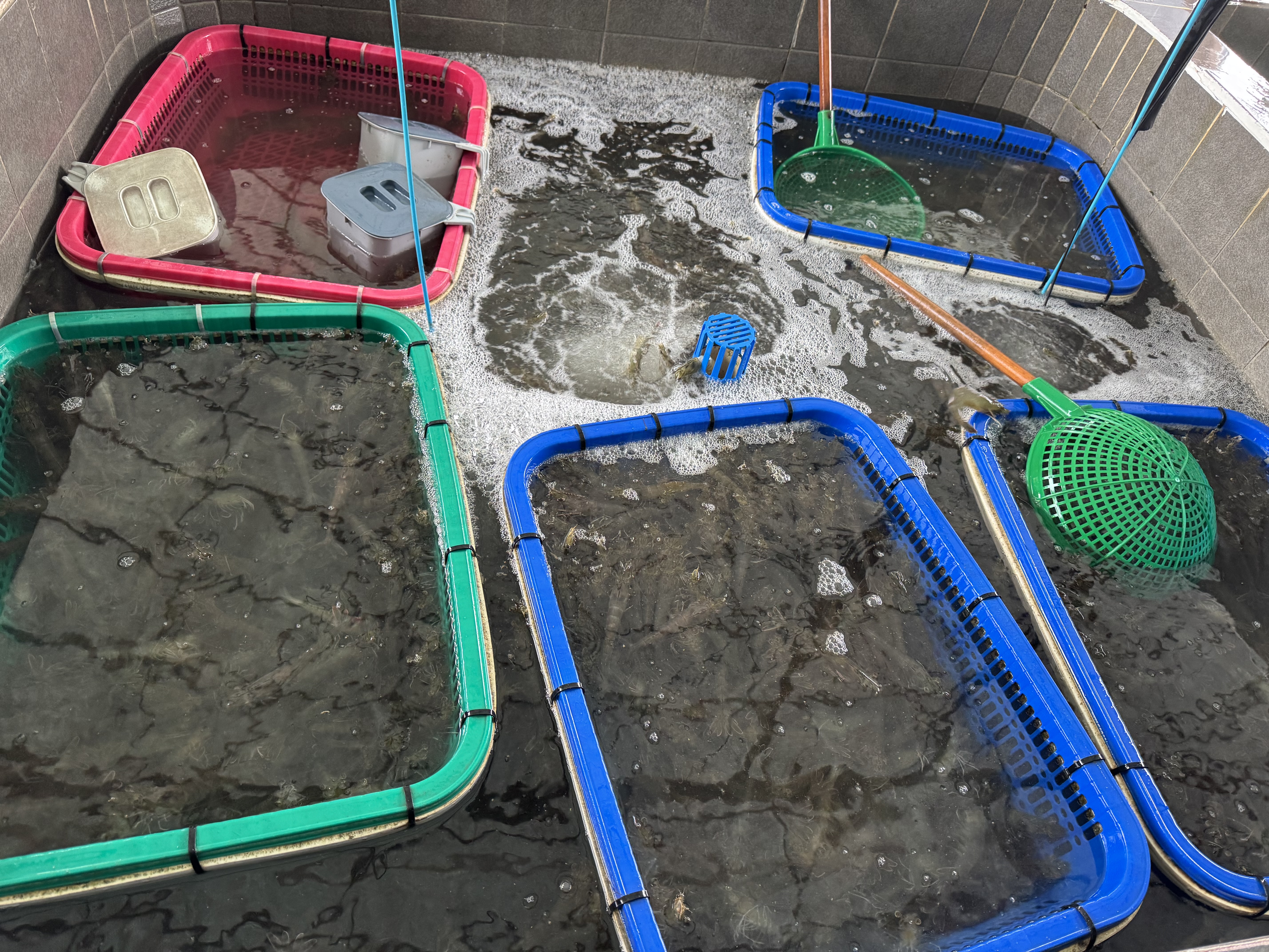 웨이팅하면서 수조 속 새우들을 봤는데, 싱싱하게 꿈틀꿈틀 살아있더라구요.