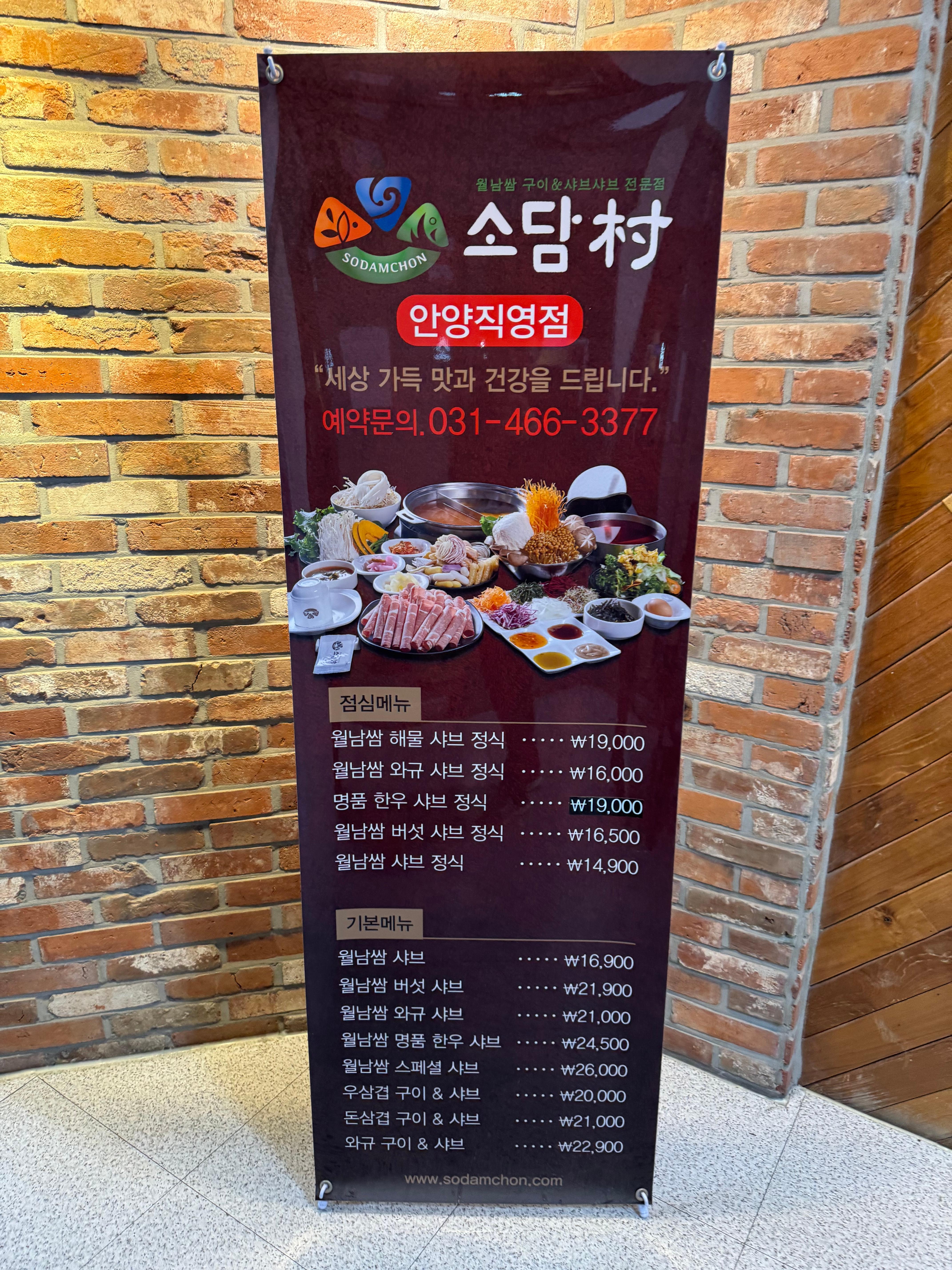 처음에는 샤브샤브 뷔페인 '샤브올데이'같은 곳도 고민했지만, 저희에겐 어린 아기도 함께라 뷔페처럼 자유롭게 돌아다니며 먹는 것은 힘들겠다 싶었어요. 샤브샤브 자체에 집중하면서도 편안하게 식사할 수 있는 곳을 찾다가, 결국 저희의 선택은 소담촌이었습니다!