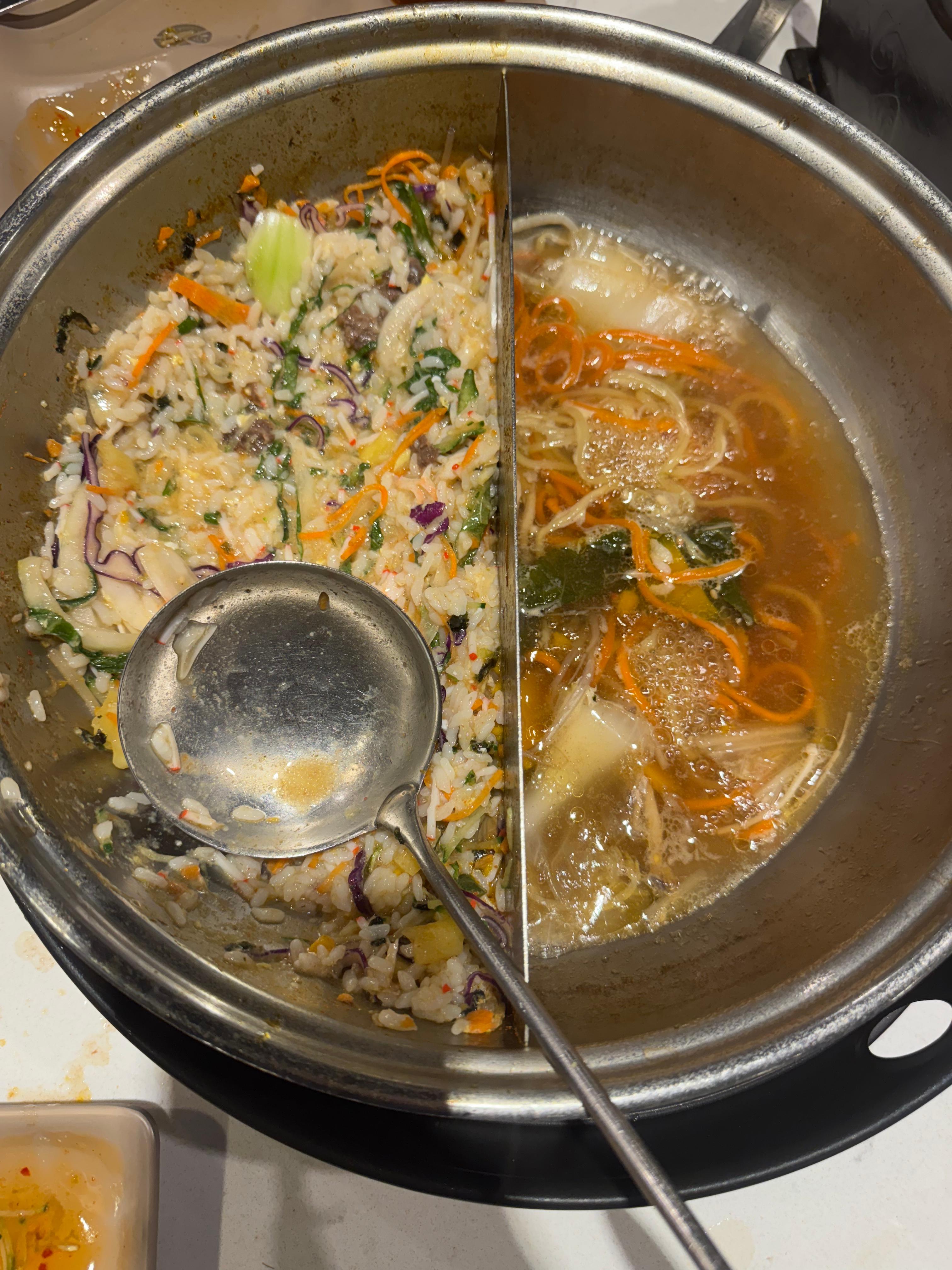 - 마무리 하이라이트는 역시 볶음밥! 테이블마다 볶음밥 재료(밥, 다진 채소, 김가루 등)를 함께 제공해 주어, 샤브샤브를 다 먹은 후 남은 육수에 셀프 볶음밥을 만들어 먹는 재미까지 완벽하게 즐겼습니다. 고소한 볶음밥은 배가 불러도 포기할 수 없는 맛이죠!