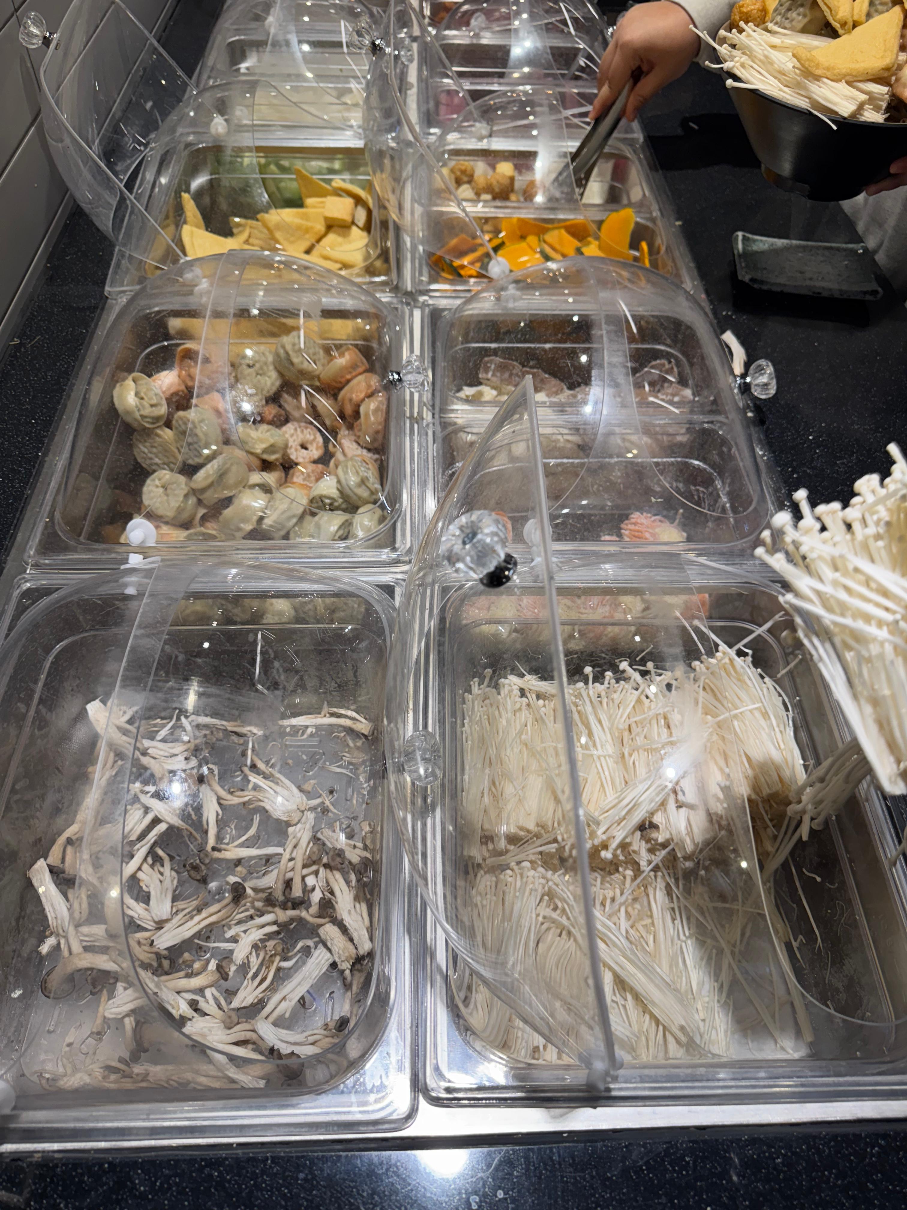 - 숙주, 청경채, 알배추는 기본! 여기에 버섯 종류도 다양하게 준비되어 있어 육수의 깊이를 더했습니다. 싱싱한 채소를 원하는 만큼 듬뿍 가져다 넣으니 건강한 샤브샤브를 즐길 수 있었어요.