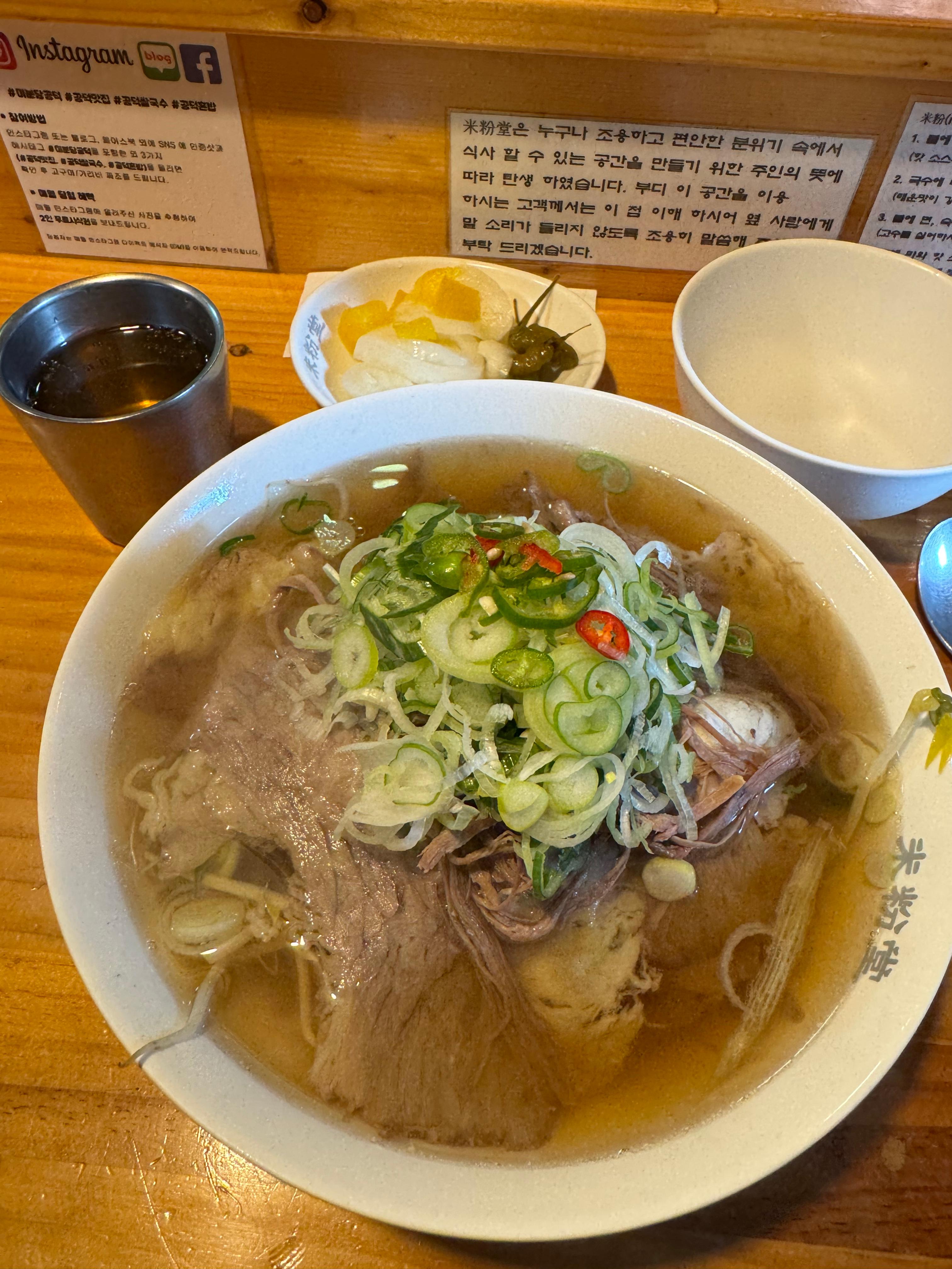 원래는 차돌쌀국수를 주문했는데, 주문이 꼬여서 차돌양지쌀국수가 나왔어요.