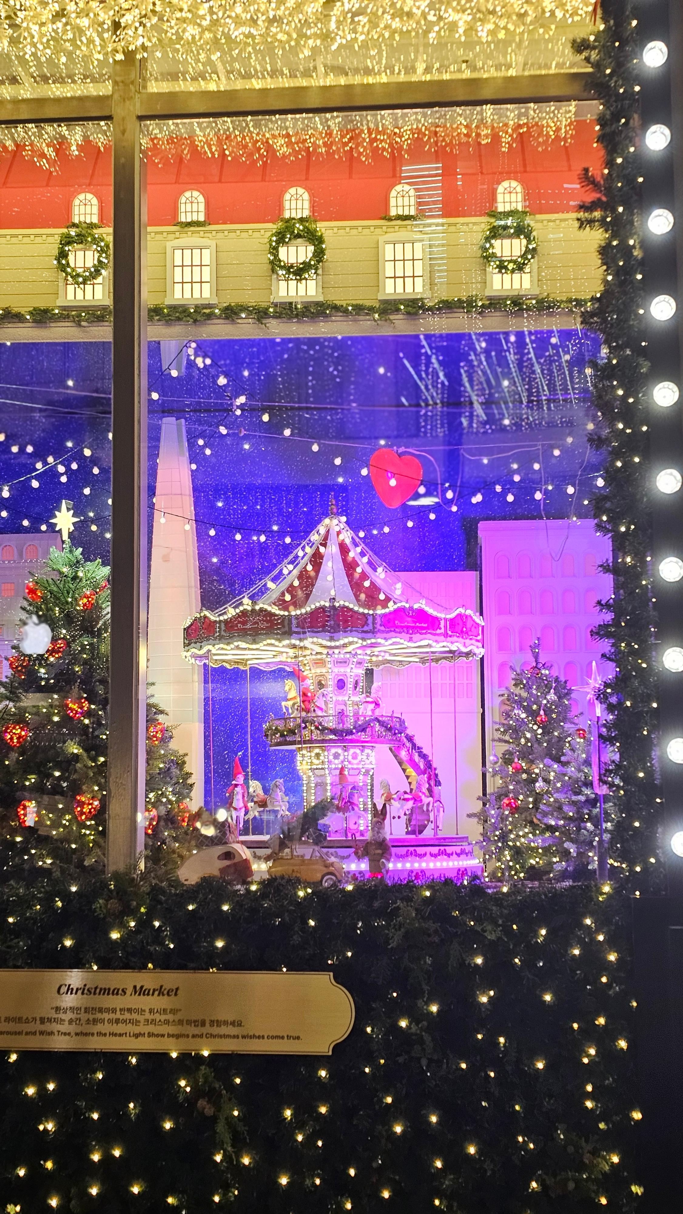 하지만 굳이 하나를 꼽자면, 이번 시즌 제 마음을 더 따뜻하게 데워준 건 롯데백화점이었습니다. 화려한 영상도 멋지지만, 손에 잡힐 듯 가까이 있는 트리 장식들과 쇼윈도 속 작은 인형들이 주는 소소한 행복감이 더 오래 기억에 남았거든요.