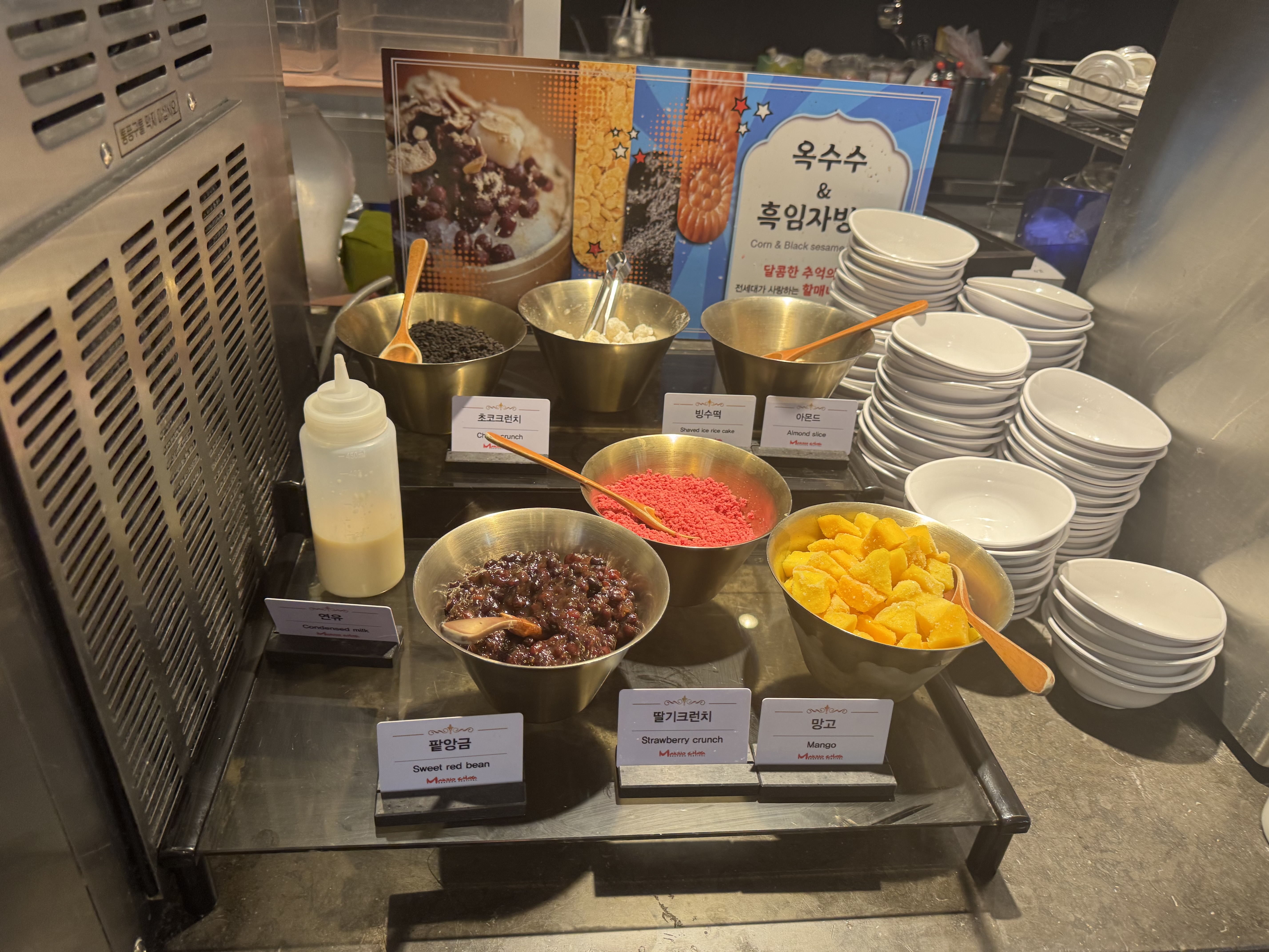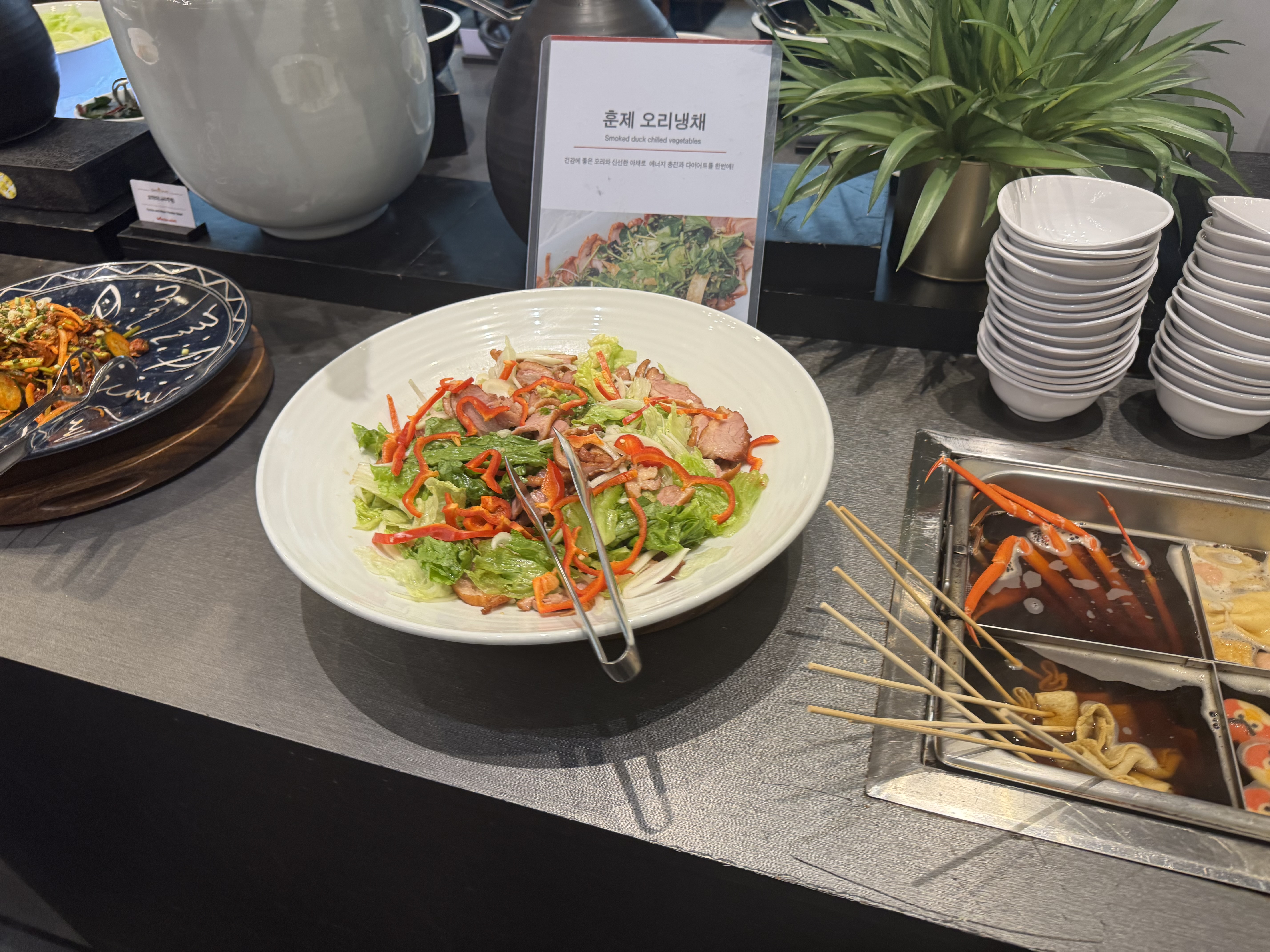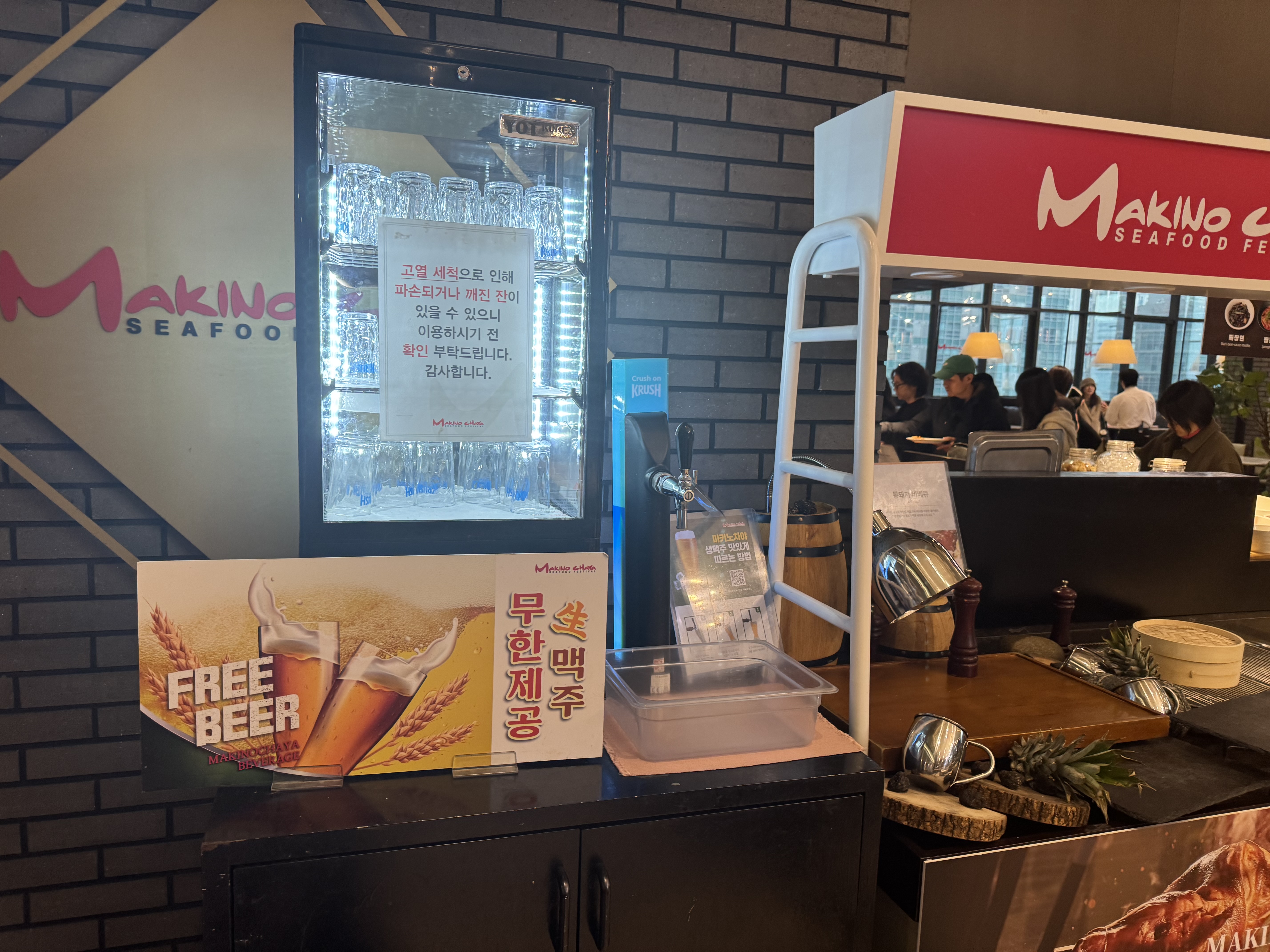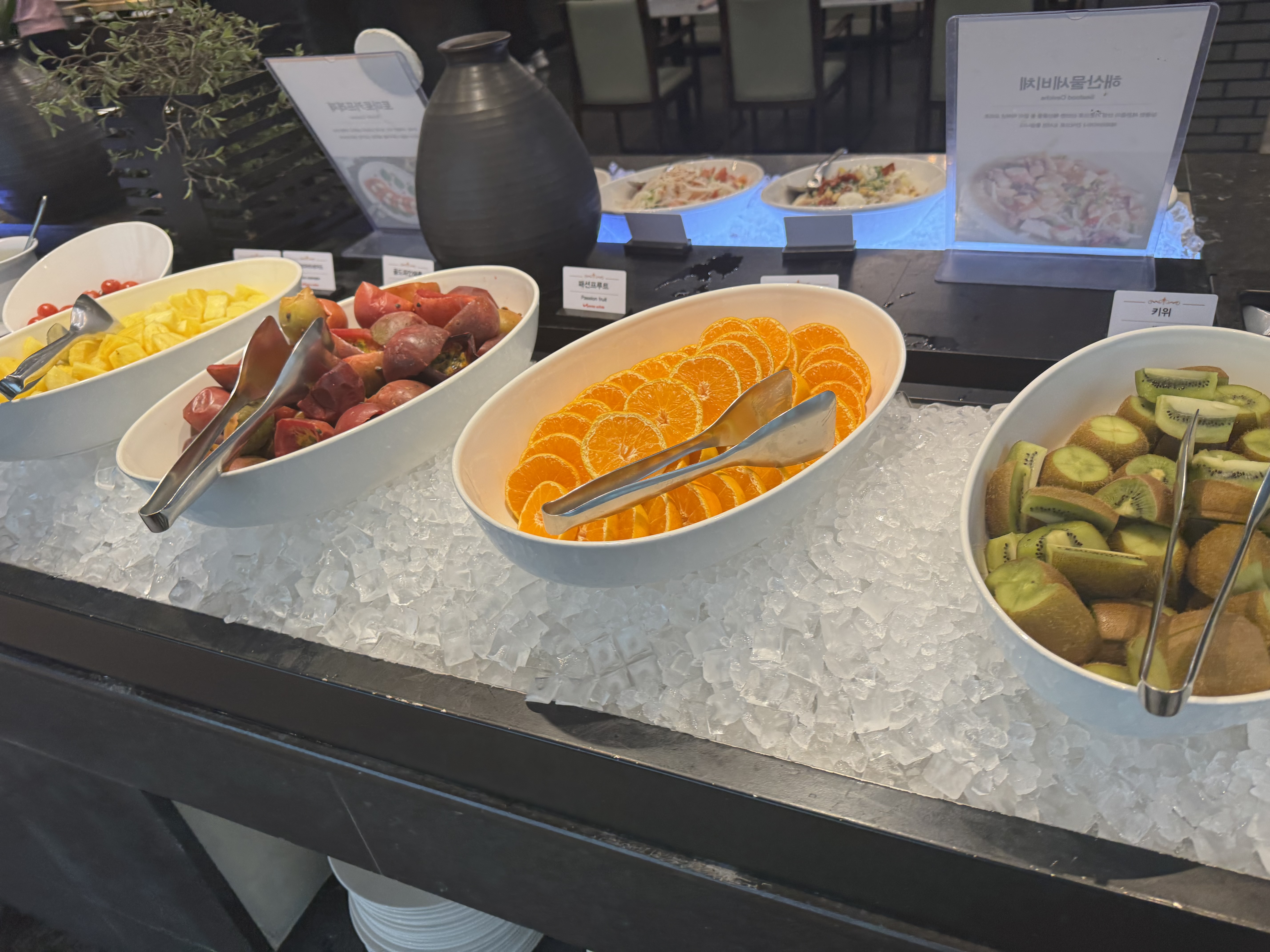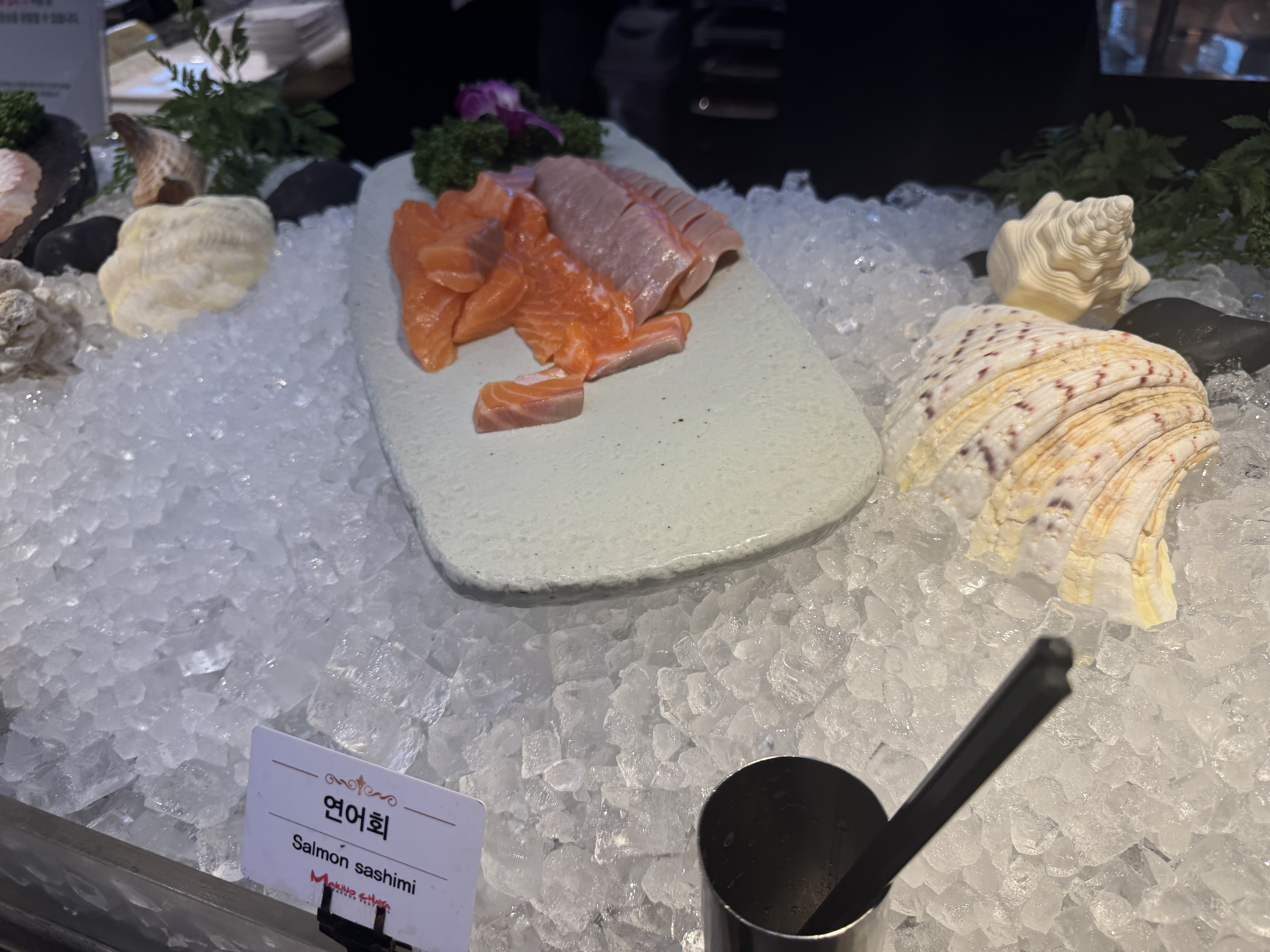 - 특이점 : 놀랍게도 한식 코너에 시원한 막걸리가 준비되어 있었습니다! 물론 평일 점심이라 가볍게 한 잔만 했지만, 육회나 무침류와 함께 즐길 수 있다는 점이 독특하고 좋았습니다.(막걸리, 맥주는 무제한인데 와인 같은 경우에는 별도 유료상품이므로 확인해보시는 것이 좋습니다.)