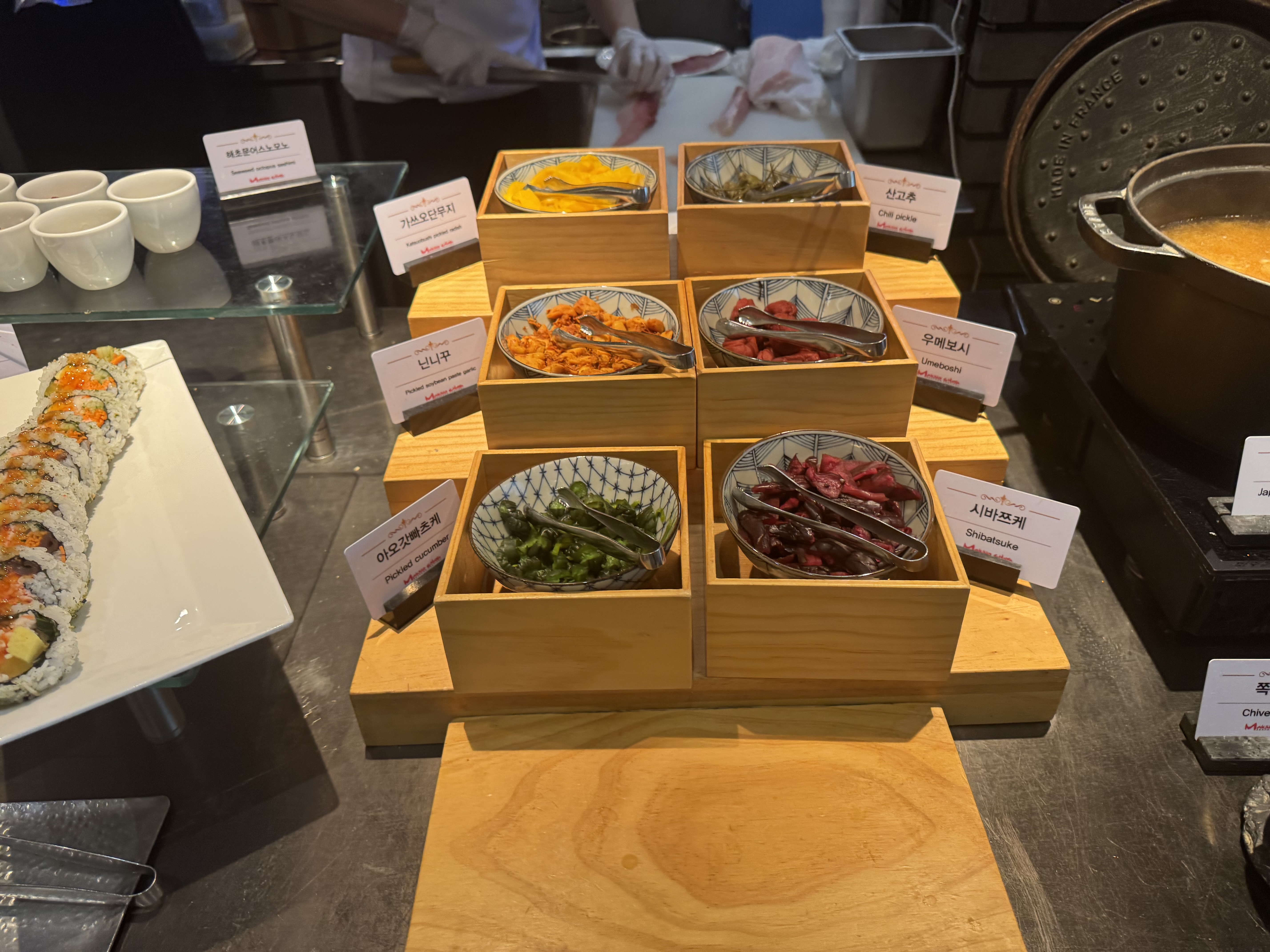 마키노차야의 한식 존은 다양함뿐만 아니라 음식의 정갈함과 맛에서도 깊은 인상을 남겼습니다 .단순히 구색 맞추기용 한식이 아니라, 하나하나 진짜 맛있는 한정식 반찬들이었습니다. 아마 다른 뷔페와 비교해봐도 한식만큼은 아주아주 만족스러웠던 곳이었습니다.