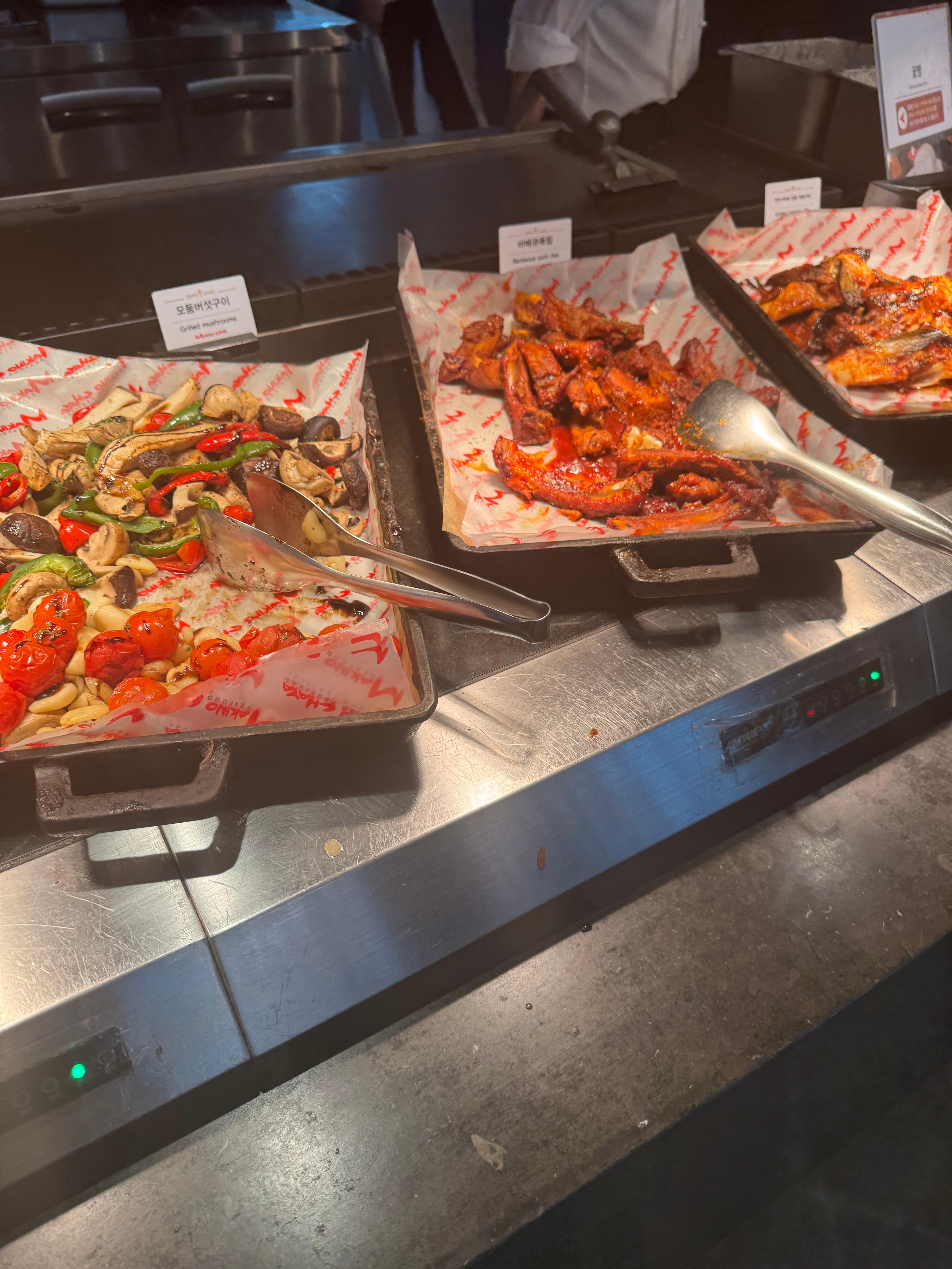 다음으로 향한 곳은 튀김과 구이, 그리고 양식 요리가 가득했던 코너입니다. 이 코너 역시 단순히 미리 만들어 놓은 음식이 아니라, 그때그때 조리하여 따뜻함을 유지하고 있어 맛의 만족도가 매우 높았습니다.
