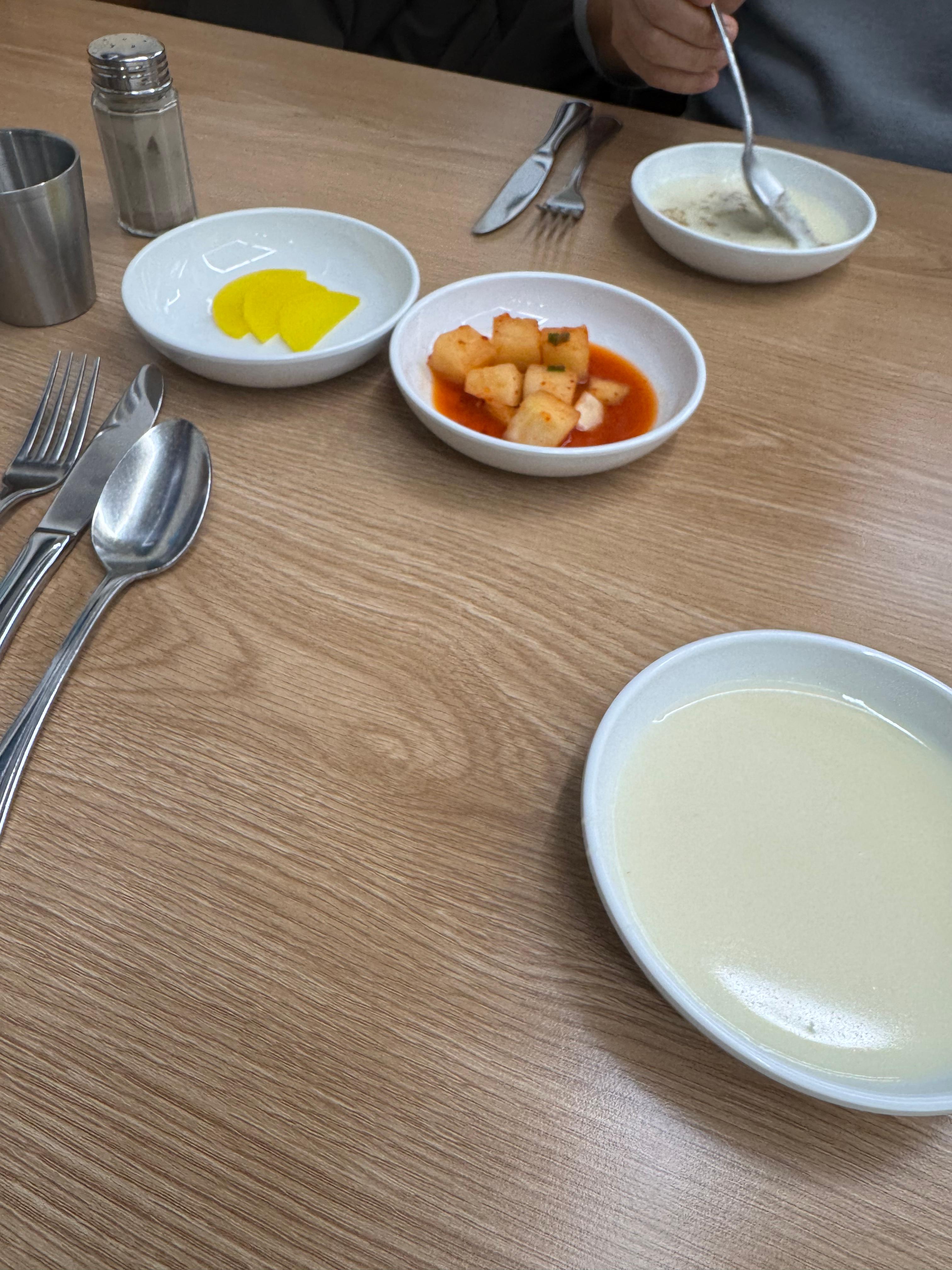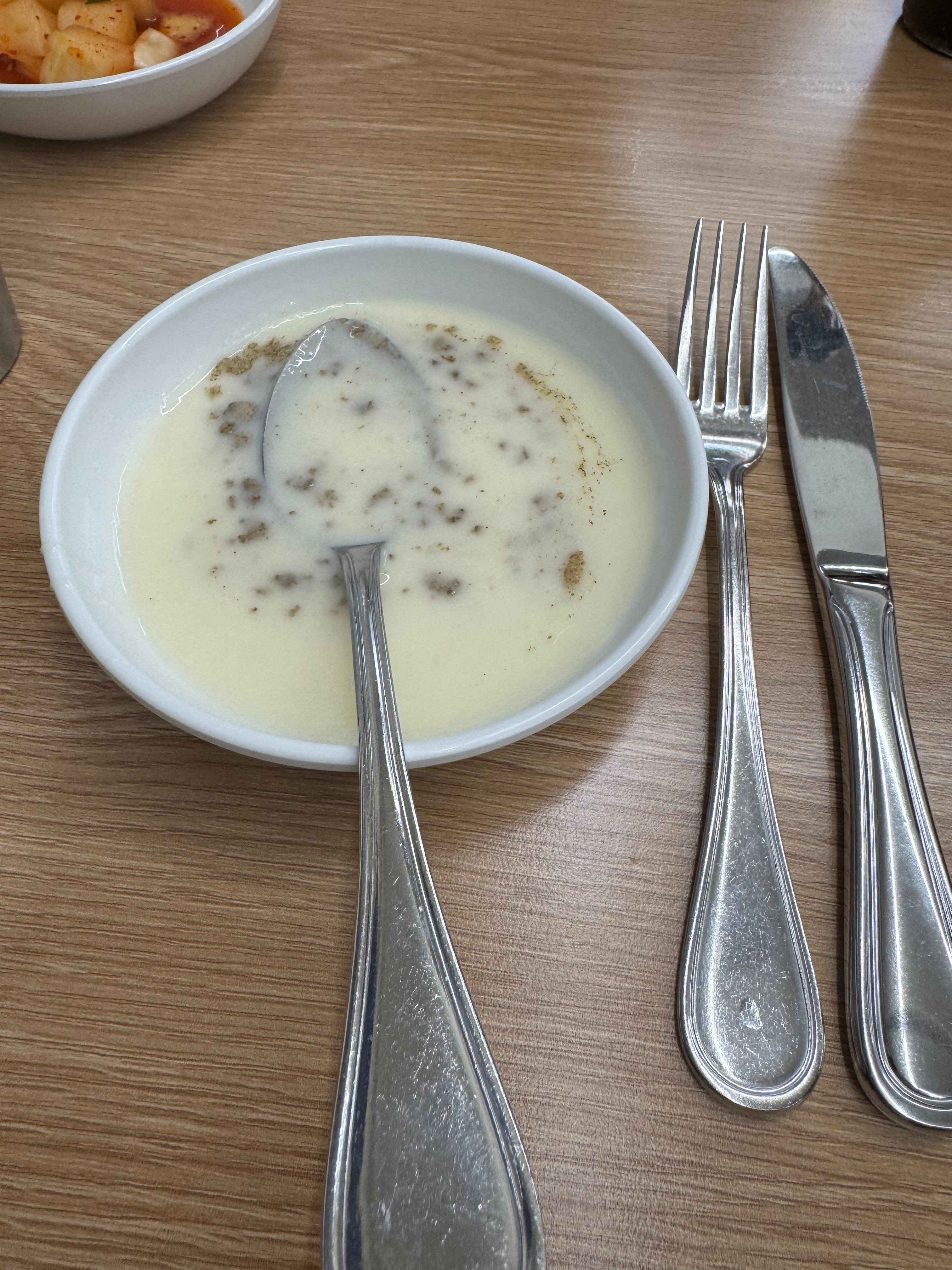자리에 앉아 주문을 마치면 가장 먼저 나오는 것이 바로 스프입니다. 요즘 프랜차이즈에서는 보기 힘든, 그야말로 정통 경양식 스프죠.