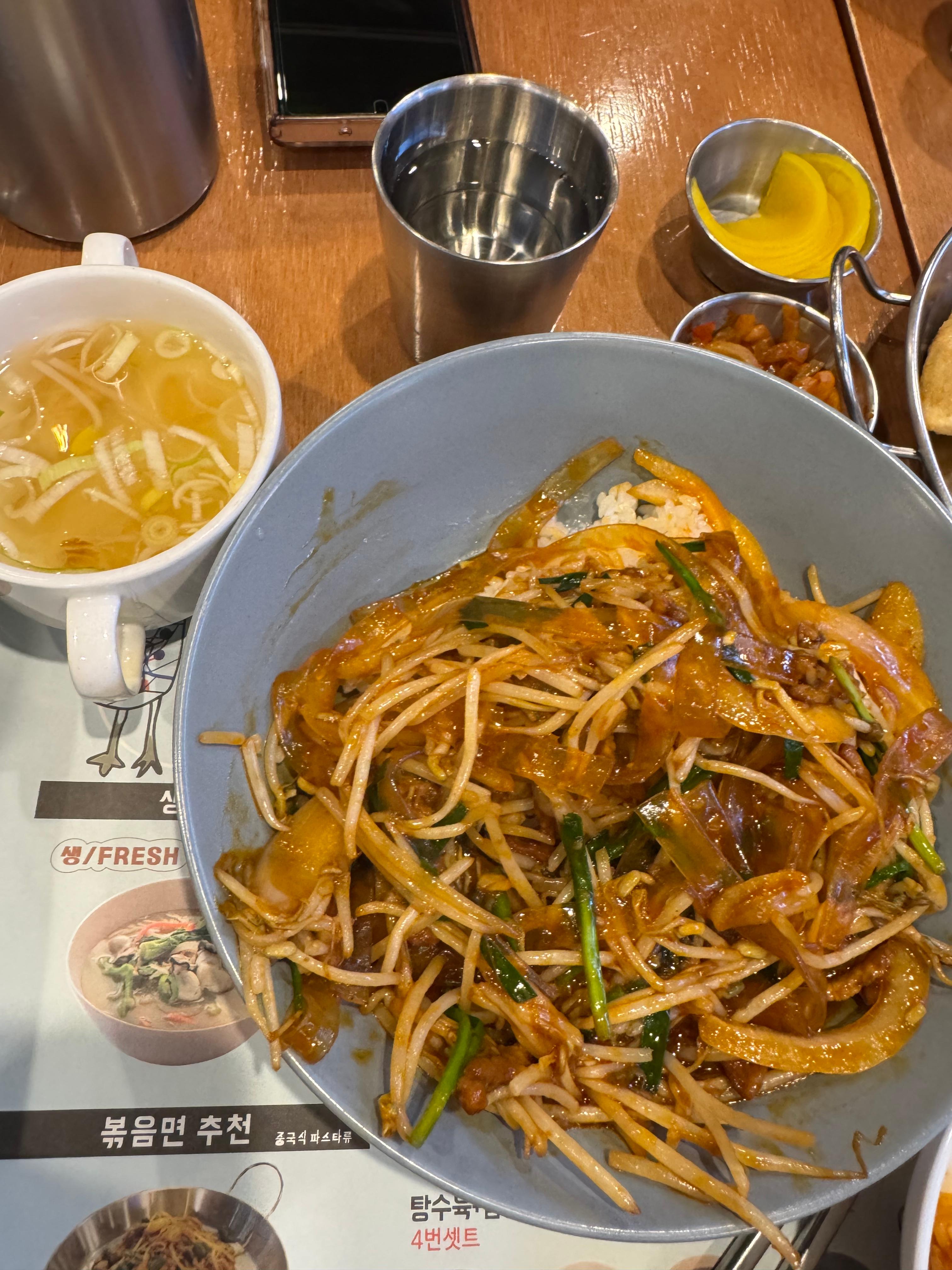 와이프가 제일 기대했던 메뉴가 바로 삼선짬뽕이었는데요. 한 숟갈 먹자마자 나온 첫 반응이 아직도 기억납니다. "음..?" 이 표정ㅋㅋㅋ 얼큰하긴 한데, 뭔가 깊은 맛이 안느껴진다고 해야 할까요. 해물 맛도 애매하고, 국물도 묘하게 정체불명 느낌... 먹다 보니 계속 "이게 무슨 맛이지?"라는 생각이 들더라구요. 자극적인데 그렇다고 시원하지도 않고, 뭔가 한 끗이 부족한 그런 맛이었습니다. 개인적으로는 좀 아쉬웠던 포인트였슴다ㅠㅠ