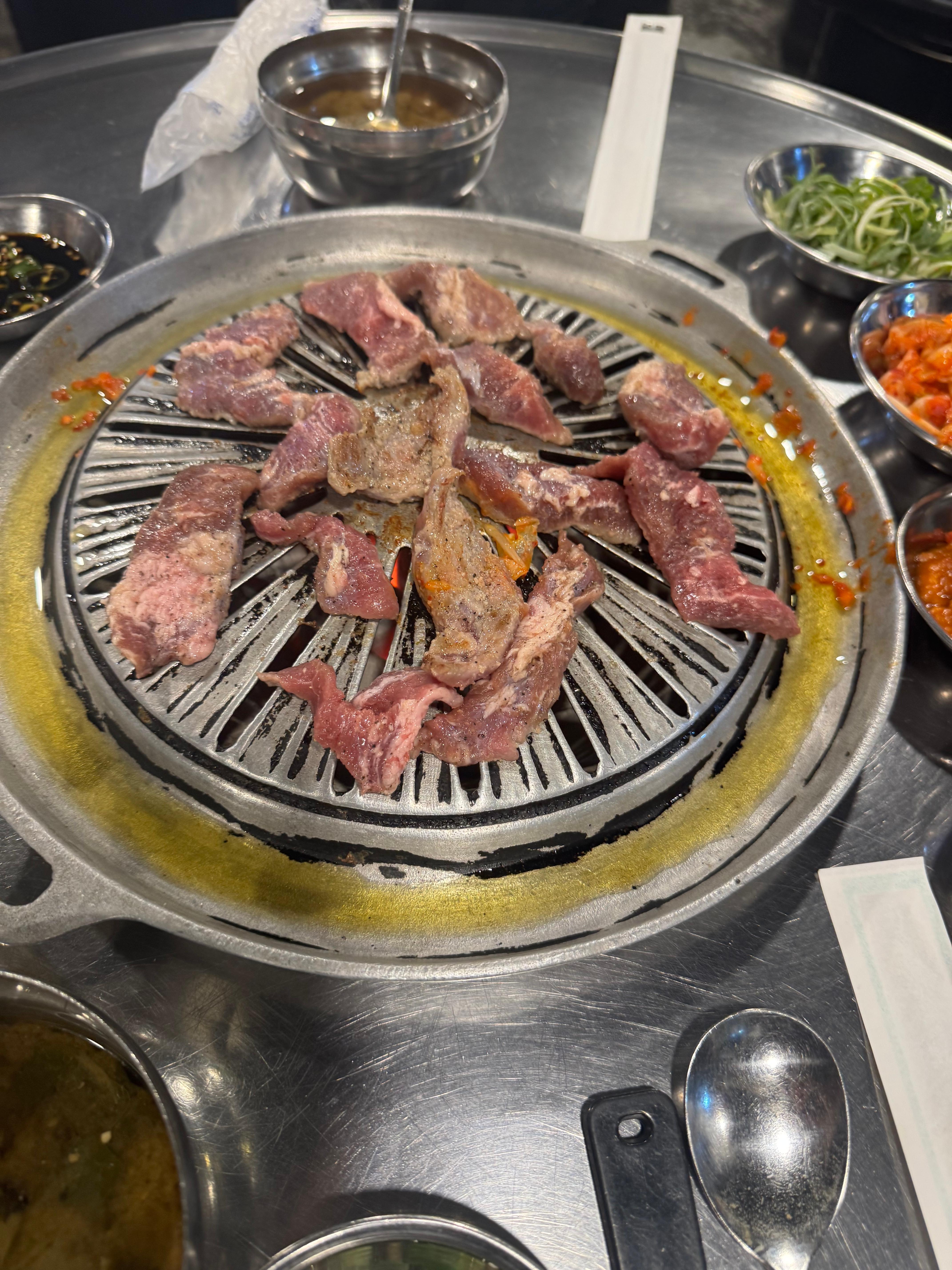 불판에 고기 올리고 가장자리에 계란을 쭉 부어주시는데 이 장면 보는 순간 아 맛있겠다.이래서 여기를 선택했지 라는 생각이 들었습니다.