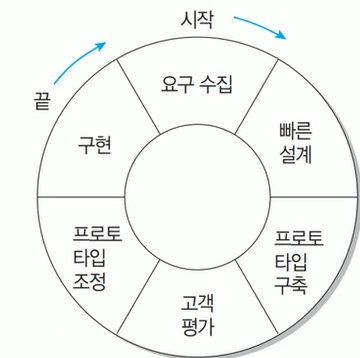 3. 새로운 요구사항이 도출될 때마다 이를 반영한 프로토타입을 새롭게 만들면서 소프트웨러를 구현하는 방법임.